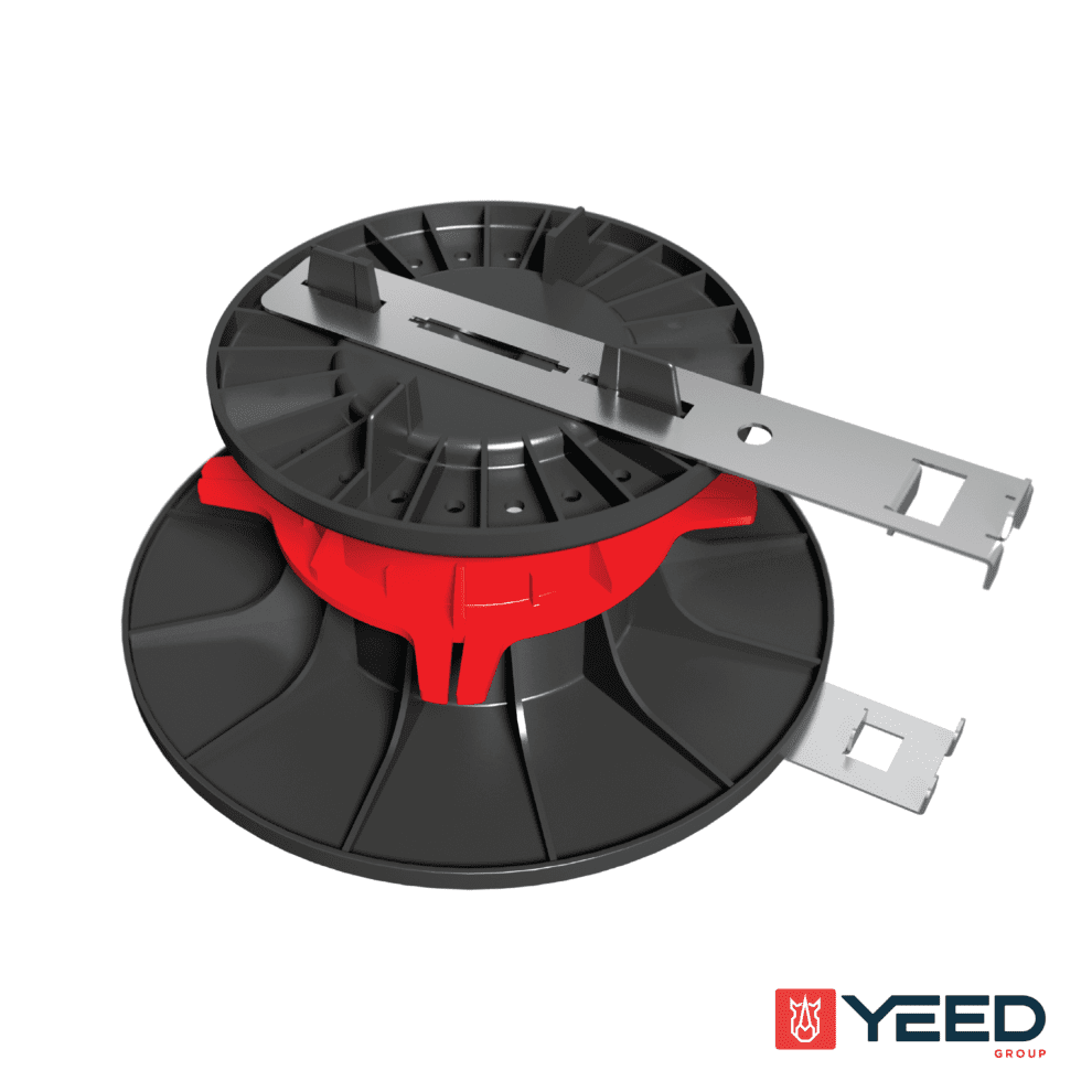 Der verstellbare Pflasterfuß dient dazu, das Fundament für eine erhöhte Terrasse zu schaffen. Diese Stütze ist für die Aufnahme einer Platten-, Fliesen-, Keramik- oder Gitterrostabdeckung ausgelegt. Der höhenverstellbare Pflasterfuß wird manuell durch Drehen der roten Mutter eingestellt. Der Kopf des Pflasterfußes ist mit 4 Laschen ausgestattet, um die Platten an ihrem Platz zu halten.